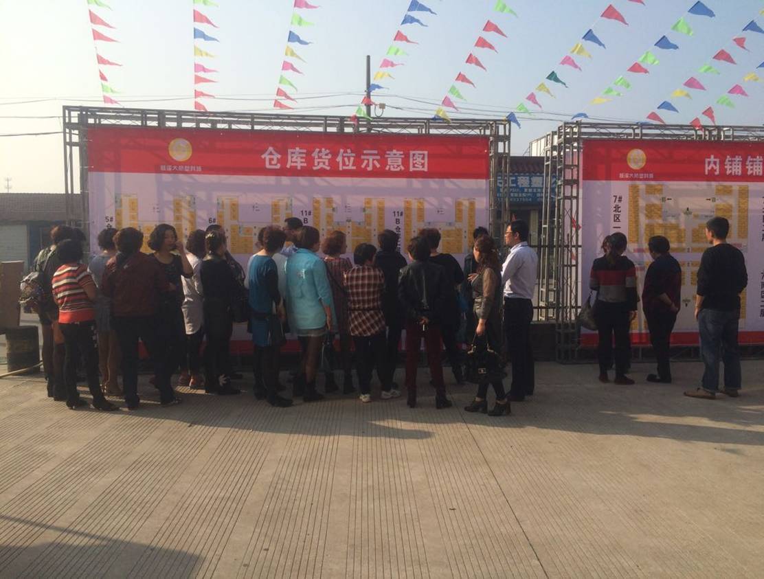 客户了解仓库和内铺铺位情况 销售报名区,工作人员在做报名解释工作